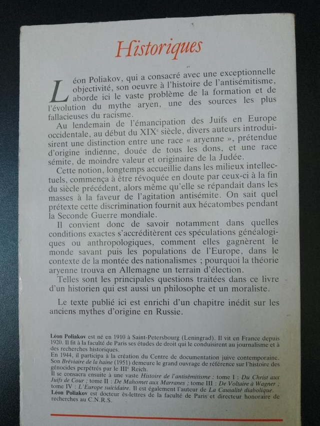 Le mythe Aryen, Léon Poliakov
